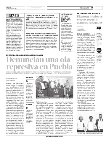 a través de la persecución con frente contra • Señalan al gobierno de Armenta de ataques con grupos de choque gente y que atienda a la pobla-