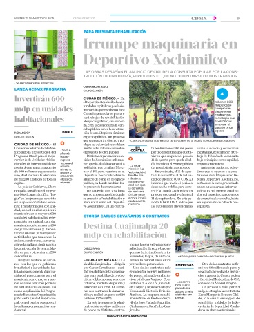 en la aplicación de tres accio- mantenimiento del Deporti- dades de Xo- riodo, la GO CDMX indica que un argumento de falta de pre-