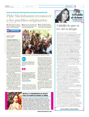 ●AFIRMÓ QUE LA GRAN- ●MÁS DE UNA QUINTA PAR- ●30% DE MEXICANOS Vidulfo lo que se
