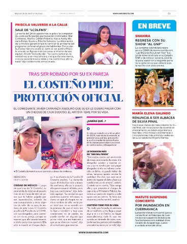 ñana de este lunes, El Costeño la promesa de que el resto me “Yo recibí una llamada de amenaza CUERNAVACA
