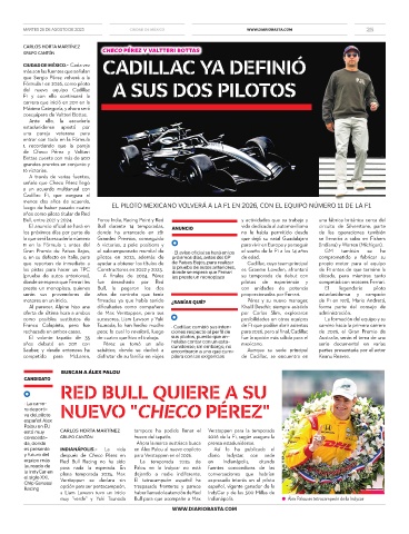 luego de haber pasado cuatro EL PILOTO MEXICANO VOLVERÁ A LA F1 EN 2026, CON EL EQUIPO NÚMERO 11 DE LA F1