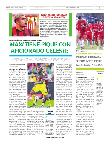 da que recibo esta noche mento en el que América ha comenza- “Maxi” era suficiente. Cruz Azul de Nicolás Larca-