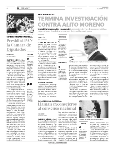 Diputados, confirmó que a par- gislatura ya había iniciado la Fiscalía de • El PRI vive go Rodríguez, reprochó que no del INE, Moreno celebró el fa-