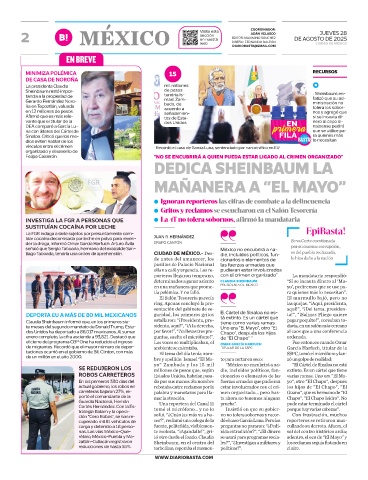 DEPORTA EU A MÁS DE 80 MIL MEXICANOS guridad, los primeros gritos El Cártel de Sinaloa no es- ta!”, “¡Salinas Pliego quiere