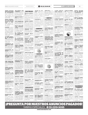 SÁBADO 30 DE AGOSTO DE 2025 CIUDAD DE MÉXICO 55.22.19.90.95 CLASIFICADOS B! 21