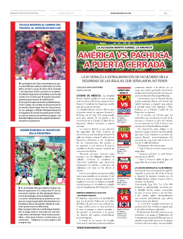 JUÁREZ DOBLEGA AL MAZATLÁN de seguridad del Club América se equipos a jugar a 'puerta cerrada señala