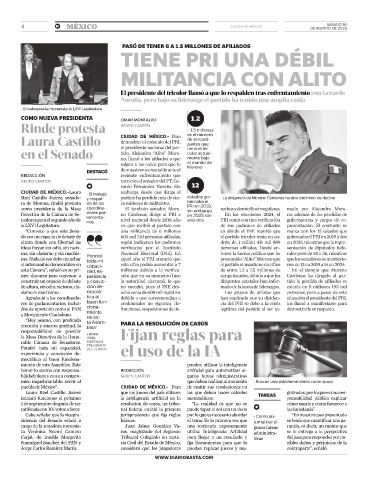 como presidenta de la Mesa coordina- El también senador, More- PRI en 2019, rechos y domicilios irregulares. mado por Alejandro More-