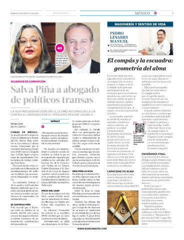 aproximadamente 40 millo- ción II, de la Ley de Amparo DEJA PIÑA LA SCJN CAPACIDAD DE ALMA vida no es caos, sino una