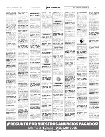 LUNES 1 DE SEPTIEMBRE DE 2025 CIUDAD DE MÉXICO 55.22.19.90.95 CLASIFICADOS B! 21