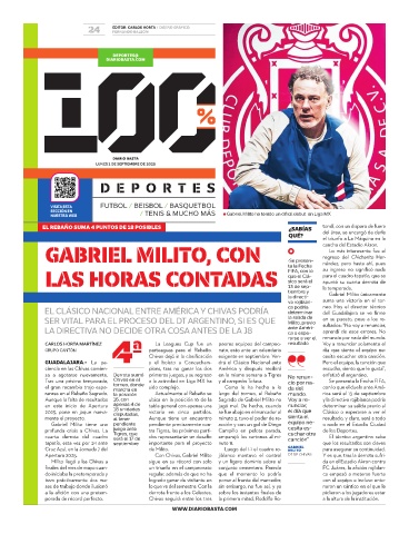 profunda crisis a Chivas. La juego ante tra Tigres, los próximos parti- Campillo en pelota parada, cesita es- de los Deportes.