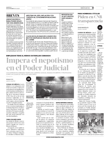 LISMO, EN LUGAR DE VÍNCULOS FAMILIARES encabezar la CNB hay 27 can- Martínez
