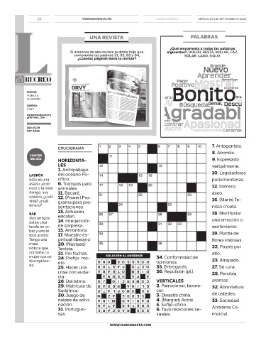 mujer nos es- 24. Prefijo: me- SOLUCIÓN AL ANTERIOR 34. Conformidad de