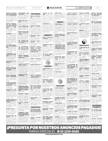 MIÉRCOLES 3 DE SEPTIEMBRE DE 2025 CIUDAD DE MÉXICO 55.22.19.90.95 CLASIFICADOS B! 21