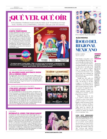 La artista de talla internancional Lady Gaga ha sor- ELÍAS ESTÁ ARRASANDO