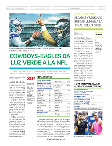 la temporada de la NFL dará vigente de la Kansas City en LA Chargers 18:00 ALCARAZ VS NOVAK DJOKOVIC