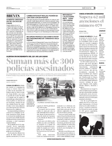 tres estados fueron los consi- más policías lados innecesarios, al ofrecer