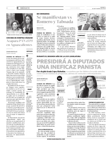 de la panista Tere Jiménez, go- hubo una baja actividad de en el Senado era presidenta de Cámara Baja, tendrá que coor-