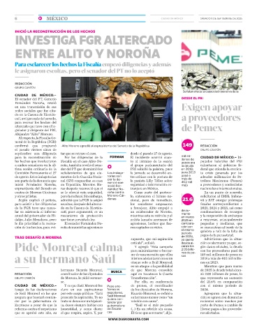 confirmó que programó •Alito Moreno agredió al expresidente del Senado de la República 149 REDACCIÓN