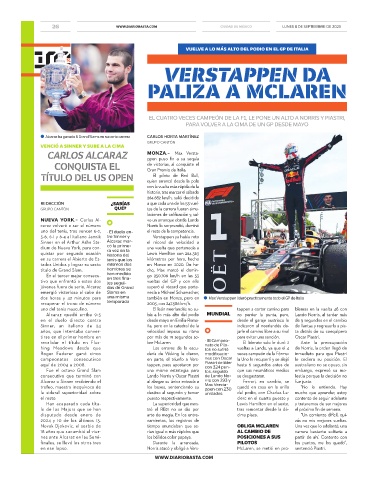 nes ante Alcaraz en las Semi- los bólidos color papaya. POSICIONES A SUS partir de ahí. Contento con