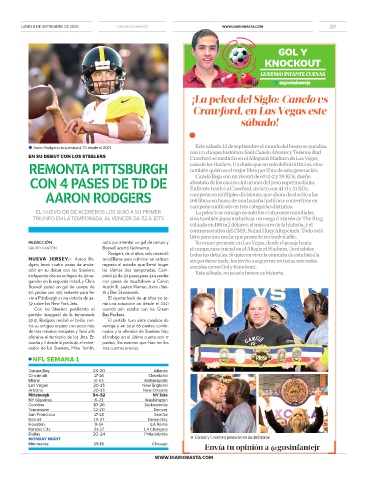 ción en su debut con los Steelers, las últimas dos temporadas. Com- Este sábado, no es solo boxeo: es historia.