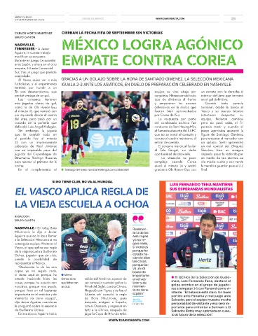 El Vasco quiso ver a más GRACIAS A UN GOLAZO SOBRE LA HORA DE SANTIAGO GIMENEZ, LA SELECCIÓN MEXICANA