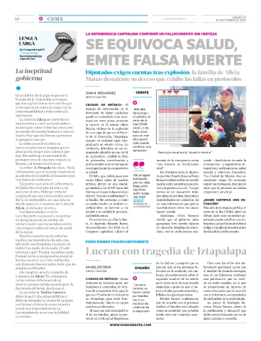 Los datos estaban mal, la deudos y se exhibió la precarie- danos”, señaló. error de la Ssa CDMX abrió un