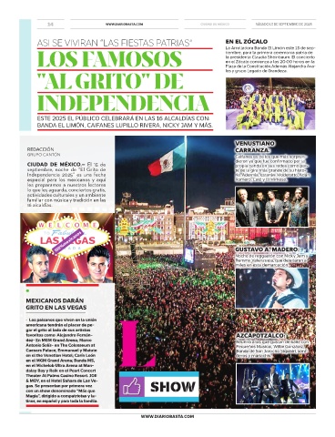 14 WWW.DIARIOBASTA.COM CIUDAD DE MÉXICO SÁBADO 13 DE SEPTIEMBRE DE 2025