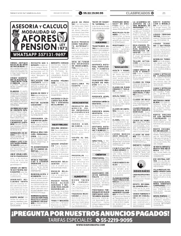 SÁBADO 13 DE SEPTIEMBRE DE 2025 CIUDAD DE MÉXICO 55.22.19.90.95 CLASIFICADOS B! 21