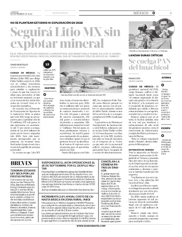 este 2025. Ante este incre- para exploración de yacimien- salarios de Litio MX, también tario de Marina.