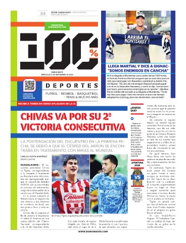 VICTORIA CONSECUTIVA • Tigres re- tapatío no tendrá equipo