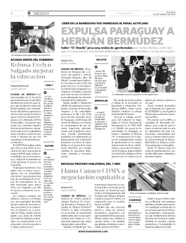 CIUDAD DE MÉXICO.-Los país, toda vez que el exfuncio- • Su detención ocurrió el pasado 12 de septiembre