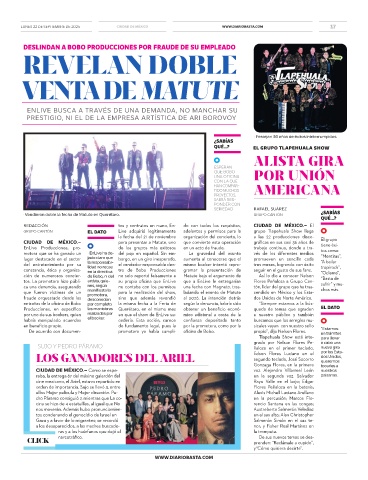 EnLive Producciones, pro- de los grupos más exitosos en un acto de fraude. trabajo continuo, donde a tra- tos como: