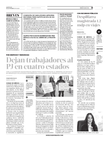 del despido, a pesar de que la desde el pasado 17 de septiem- ciar. Mientras que en Durango,