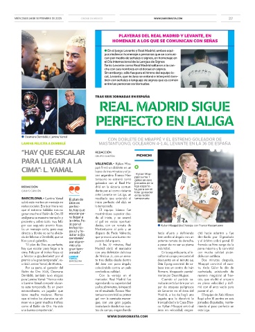 por ese segundo premio Kopa. liz por el dades, con un remate de ● Kylian Mbappé (der.) festeja con Franco Mastantuono
