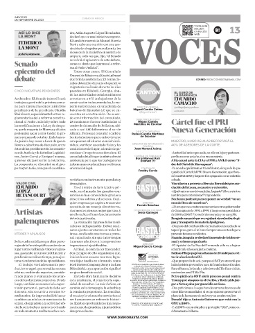 discreta, sin recurrir a eventos tu- la conducta prepotente. La sencillez, Periódicos de México, A.C. Calle Guerrero Núm. otros líderes mundiales, si es que quieren preservar el