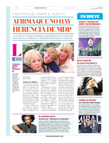 • Sylvia Pas- ● La gran Silvia Pinal, Sylvia Pasquel y La Guzmán. rá el 14 de marzo de 2026 al Estadio de