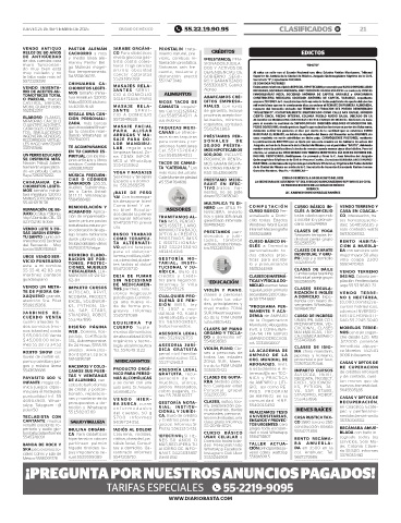 JUEVES 25 DE SEPTIEMBRE DE 2025 CIUDAD DE MÉXICO 55.22.19.90.95 CLASIFICADOS B! 21