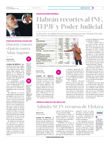 inhabilitado por al menos 20 tan para Judicial de la Federación, pues mil millones de pesos. El Ins- de pesos más. No hay justifica-