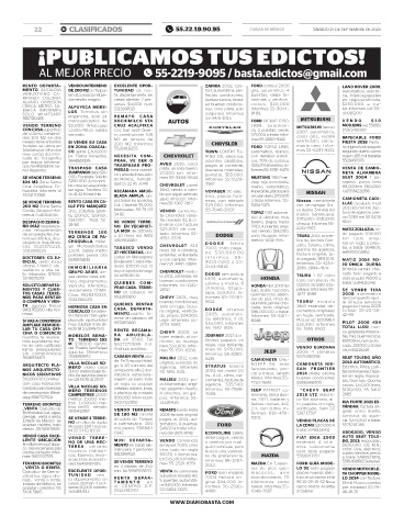 22 B! CLASIFICADOS 55.22.19.90.95 CIUDAD DE MÉXICO SÁBADO 27 DE SEPTIEMBRE DE 2025