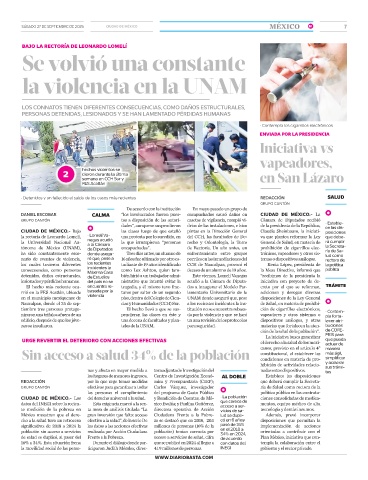 Naucalpan, donde el 25 de sep- cias y Humanidades (CCH) Sur. a los recientes incidentes la ins- de Salud, en materia de prohibi-