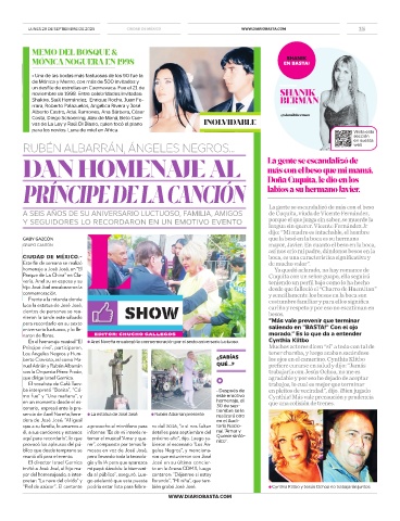 En el homenaje musical “El ● Anel Noreña encabezó la conmemoración por el sexto aniversario luctuoso. Cynthia Klitbo