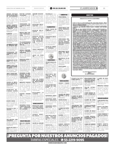 LUNES 29 DE SEPTIEMBRE DE 2025 CIUDAD DE MÉXICO 55.22.19.90.95 CLASIFICADOS B! 21
