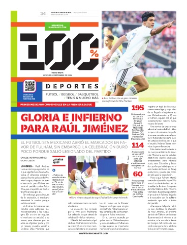SECCIÓN EN / TENIS & MUCHO MÁS ● Raúl Jiménez dio un gran cabezazo