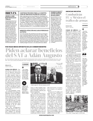 fiscal para el senador, o de otro cuando para 2026 se contem- millones de pesos de ISR. • Para evitar trasiego ilegal a nuestro país