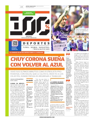 CHUY CORONA SUEÑA Segui- de esta afición”, mencionó el