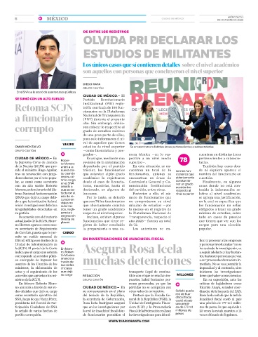 des oficiales que dejó su cargo su comparecencia en el pleno otras redes de corrupción. Señaló que la dinador de la bancada del PAN,