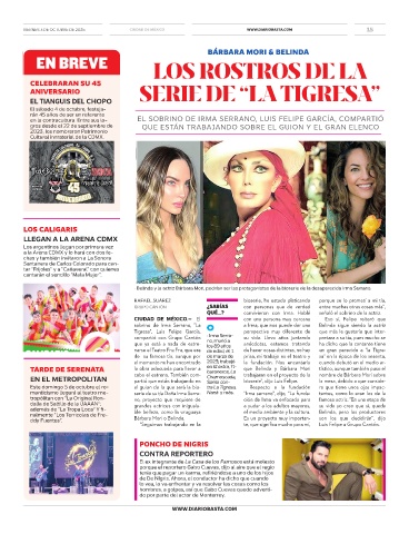 Este domingo 5 de octubre el ro- el guion de lo que será la bio- tra La Tigresa, Respecto a la fundación ra que tiene unos ojos impac-