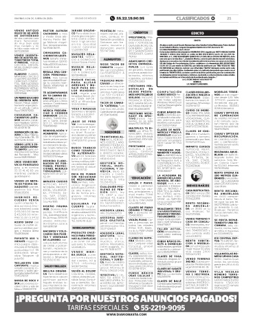 VIERNES 3 DE OCTUBRE DE 2025 CIUDAD DE MÉXICO 55.22.19.90.95 CLASIFICADOS B! 21