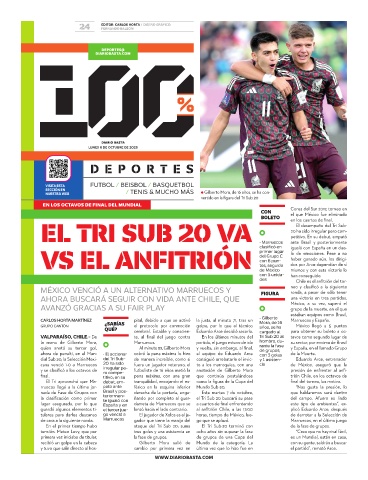 rruecos llegó a la última jor- pató ante férico en la esquina inferior Mundo Sub-20. “Nos gusta la presión, lo