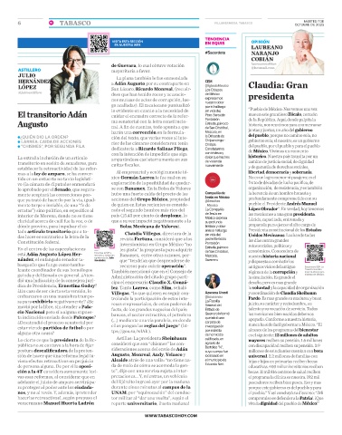 ¿En caso de ser cierta esta versión, lo Villegas, “lo que quieren es seguir con- Azucena Uresti y coordinación de Claudia Sheibaum